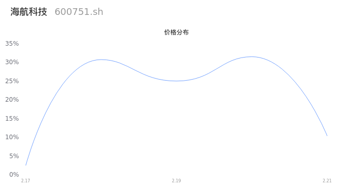 然后我们来看下当日成交的价格分布。经过分析发现,该股票当日成交价格波动低于10个最小波动价位,由于可以参考的样本量非常少,价格分布分析的结果不具有指导意义,下图仅供参考。