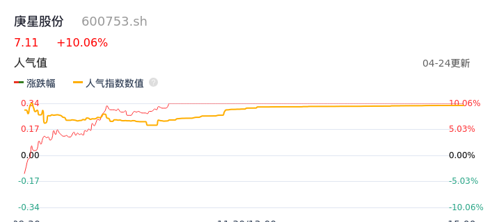 04月24日,庚星股份收报7.11,股价涨幅10.06%,成交金额7805.66万元,换手率5.32%。