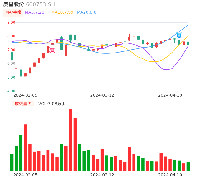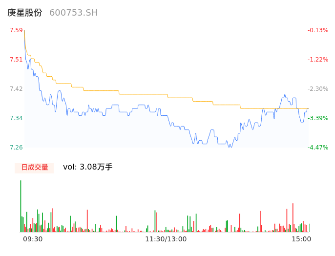 04月10日,庚星股份收报7.35,股价涨幅-3.29%,成交金额2272.56万元,换手率1.43%。