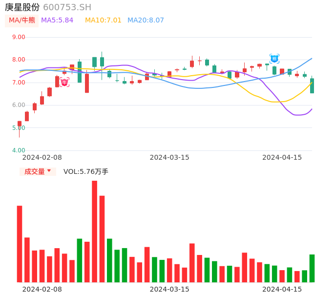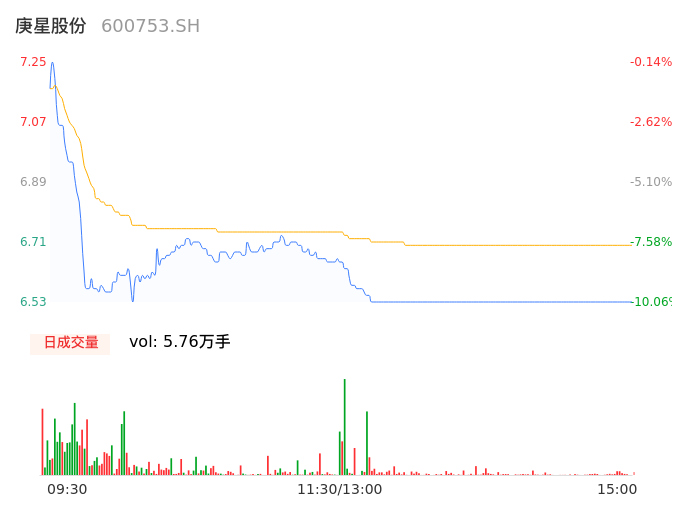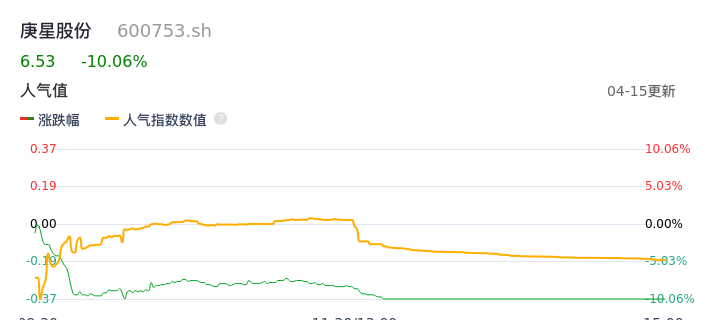 04月15日,庚星股份收报6.53,股价涨幅-10.06%,成交金额3853.47万元,换手率2.68%。