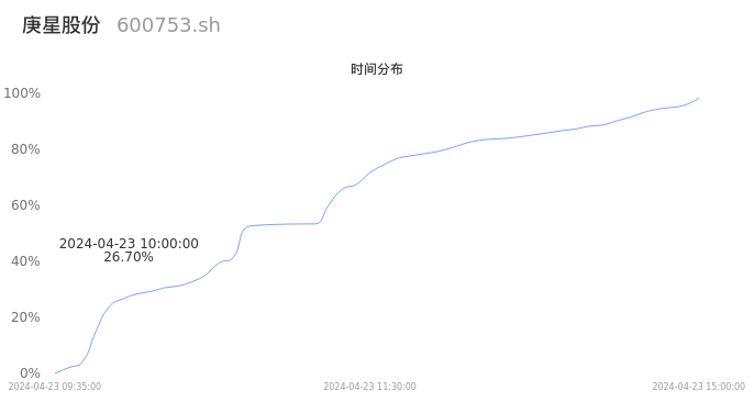 根据成交分布分析,该股票当天放量成交,成交清淡。时间上看,早盘前半小时成交量占据当天总成交量的26.7%;价格上看,成交呈现右偏峰。成交分布分析主要研究股票成交的分布特性,不具有预测功能,请知悉。