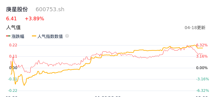 04月18日,庚星股份收报6.41,股价涨幅3.89%,成交金额3622.76万元,换手率2.66%。