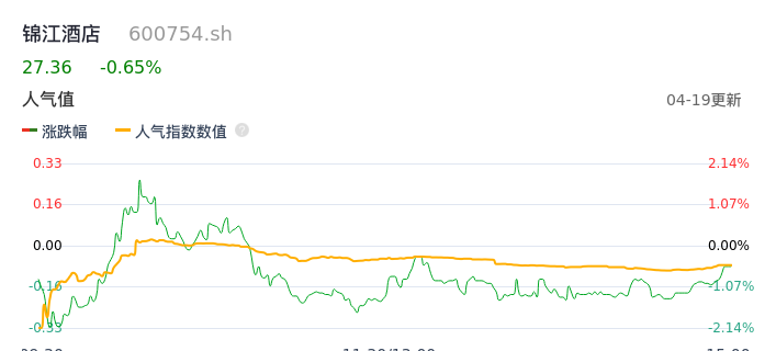 04月19日,锦江酒店收报27.36,股价涨幅-0.65%,成交金额3.68亿元,换手率1.47%。