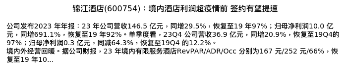 值得注意的是:2024年04月广发证券的嵇文欣/孟鑫分析师,首次发布关于锦江酒店的研究报告,标题为:锦江酒店(600754):境内酒店利润超疫情前 签约有望提速。