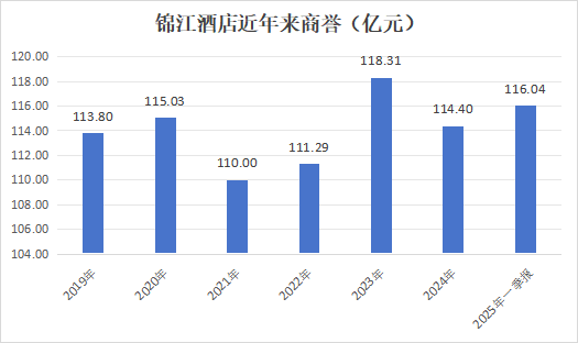 在商誉方面,截至2025年3月末,公司商誉规模高达116.04亿元,占期末总资产比例分别为25.5%,占期末净资产比例近75%。这巨额商誉主要源于长期的高溢价并购策略。更严峻的是,锦江酒店一季度末的商誉规模相当于2024年全年扣非归母净利润的21倍多,若并购的相关资产业绩恶化,大额商誉减值将严重吞噬公司利润。