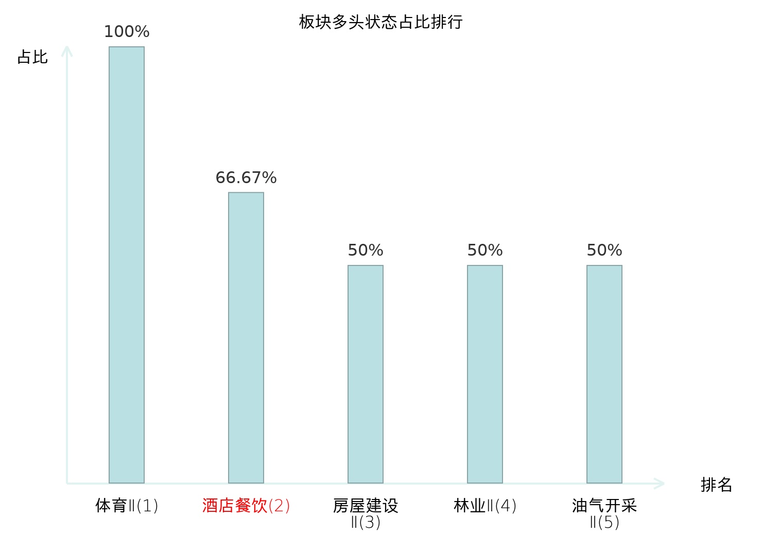 全市场所有行业板块中主力多头状态占比排名中,体育Ⅱ板块位居第一。国有大型银行Ⅱ板块名次提升最快,较昨日上升100位。