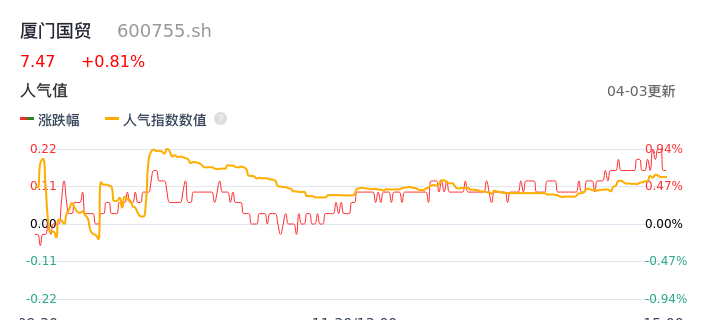 04月03日,厦门国贸收报7.47,股价涨幅0.81%,成交金额1.30亿元,换手率0.86%。