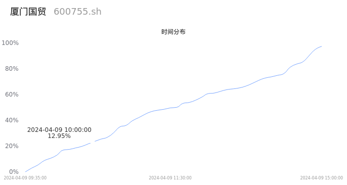 600755厦门国贸2024年04月09日成交19.73万手,成交金额1.45亿元,相较昨日缩量1.13万手,换手率0.97%,成交清淡。