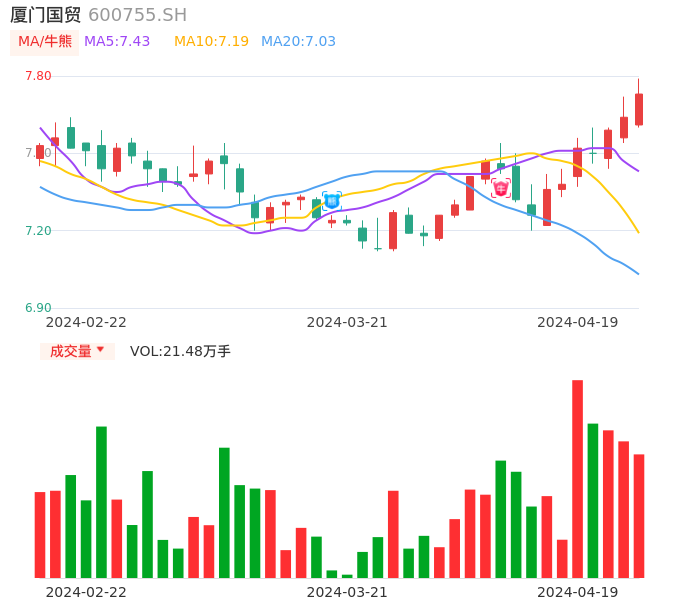 04月19日,厦门国贸收报7.73,股价涨幅1.18%,成交金额1.66亿元,换手率1.06%。
