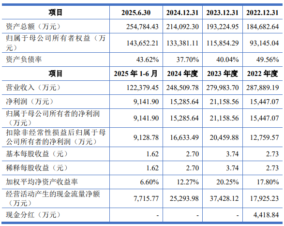 财务方面,于2022年度、2023年度、2024年度以及2025年1-6月,林平发展营业收入分别约为28.79亿元、28亿元、24.85亿元以及12.24亿元人民币;同期,公司实现净利润分别约为1.54亿元、2.12亿元、1.53亿元以及9141.9万元人民币。