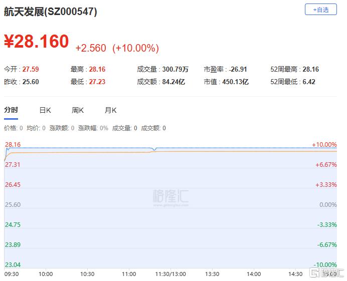 航天发展:今日涨停,全天换手率18.93%,成交额84.24亿元。机构净买入4.82亿元,营业部席位合计净买入6.60亿元。