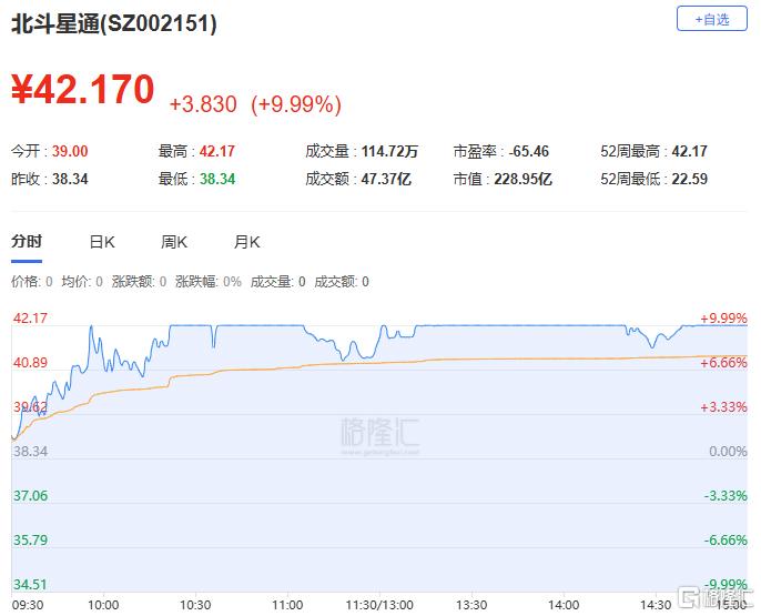 北斗星通:今日涨停,全天换手率25.91%,成交额47.37亿元。机构净买入9283.03万元,营业部席位合计净买入3.65亿元。
