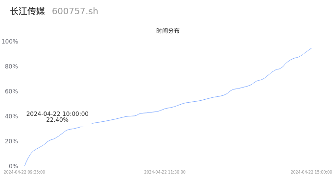 根据成交分布分析,该股票当天放量成交,成交清淡。时间上看,早盘前半小时成交量占据当天总成交量的22.4%;价格上看,成交呈现中间峰。成交分布分析主要研究股票成交的分布特性,不具有预测功能,请知悉。