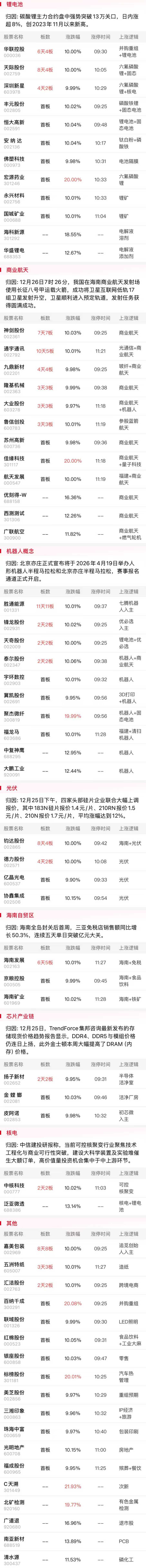 综合来看,今日早盘市场冲高回落,创业板指与沪指双双翻绿,其中锂电产业链再度走强,天际股份等个股涨停,海南、有色金属等方向表现同样亮眼,而商业航天个股虽然分化有所加大但依旧维持着较高的活跃度。而科技股方向集体陷入调整,算力硬件与机器人等热门赛道跌幅明显。另外,短线情绪也遭遇明显回落,全市场炸板率超4成。整体而言在指数连续反弹后,在盘中出现分歧整理也在情理之中,在没有明显退潮信号的情况下,仍可留意热门赛道短线调整过程中低吸机会。