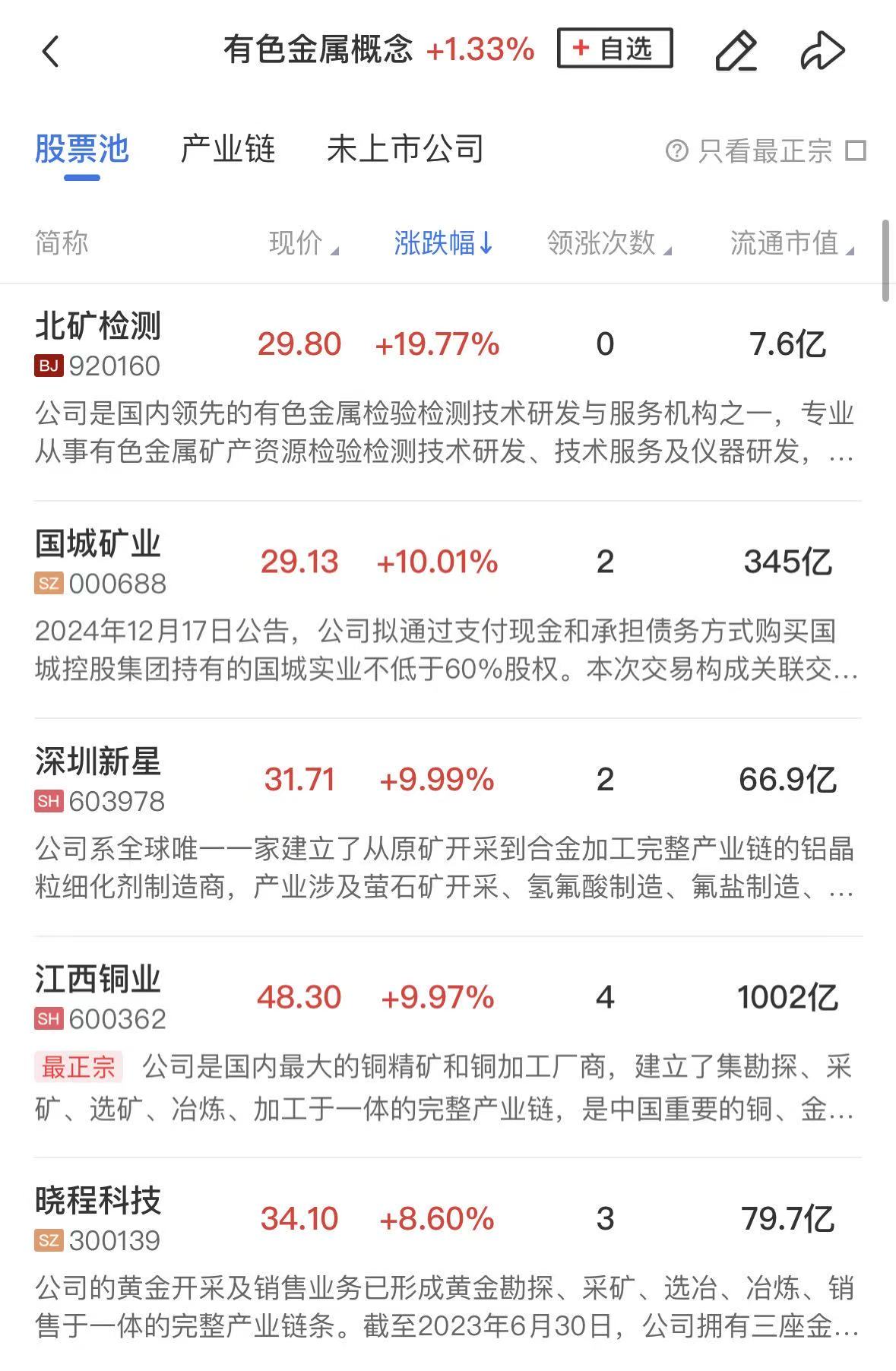 有色板块震荡走强,国城矿业、深圳新星涨停,江西铜业、天华新能、晓程科技、铜陵有色、云南铜业等涨幅居前。