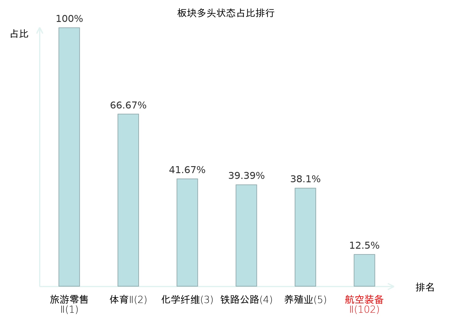 全市场所有行业板块中主力多头状态占比排名中,旅游零售Ⅱ板块位居第一。旅游零售Ⅱ板块名次提升最快,较昨日上升130位。