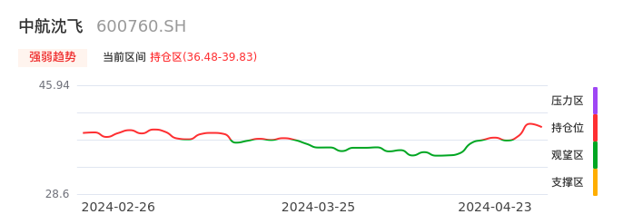 我们来看一下该股的九方特色指标强弱趋势的情况:中航沈飞近日从观望区上穿到持仓区。股价短期站上多头区域,但还未完全站稳。后续重点关注多空分界点的争夺:36.48元。如未能有效站稳则可能重新回到空头行情。