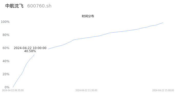 600760中航沈飞2024年04月22日成交38.36万手,成交金额14.62亿元,相较昨日放量19.45万手,换手率1.40%,成交清淡。