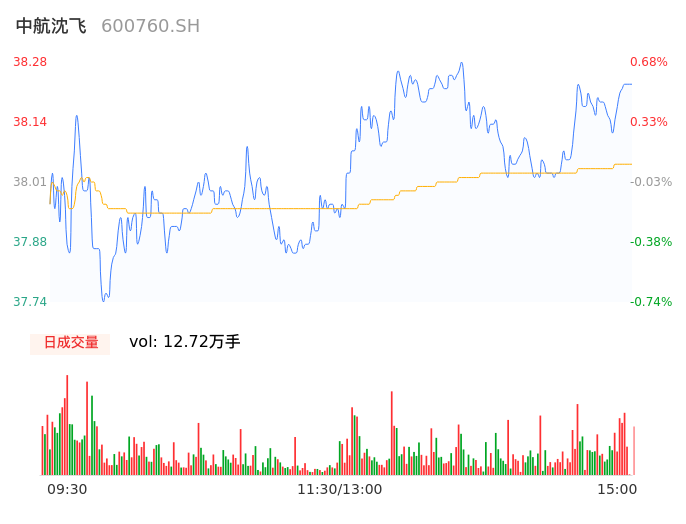 04月24日,中航沈飞收报38.23,股价涨幅0.55%,成交金额4.84亿元,换手率0.46%。