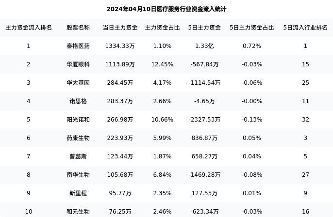 从主力资金流向来看,医疗服务行业今日主力资金流入28.01亿元,在所有申万二级行业中排名:36/131。