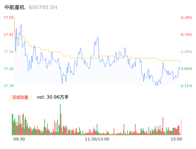 04月25日,中航重机收报17.26,股价涨幅-1.65%,成交金额5.35亿元,换手率2.11%。