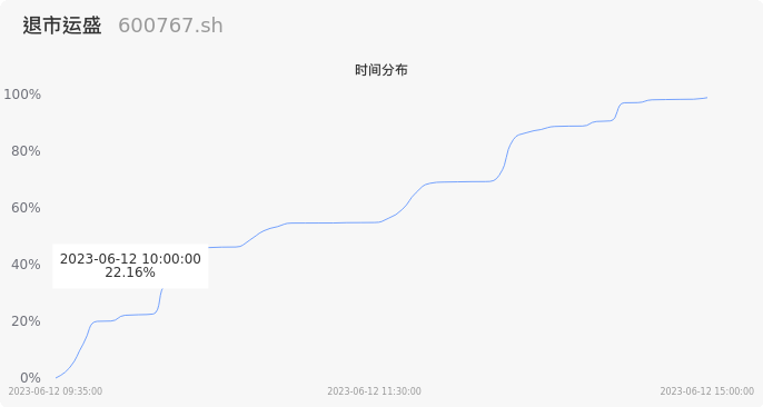 600767退市运盛2023年06月12日成交13.71万手,成交金额551.17万元,相较昨日放量5648手,换手率4.02%,成交清淡。