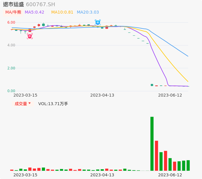 06月12日,退市运盛收报0.40,股价涨幅-2.44%,成交金额551.17万元,换手率4.02%。