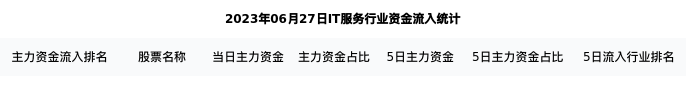从主力资金流向来看,IT服务行业今日主力资金流入137.24亿元,在所有申万二级行业中排名:129/131。