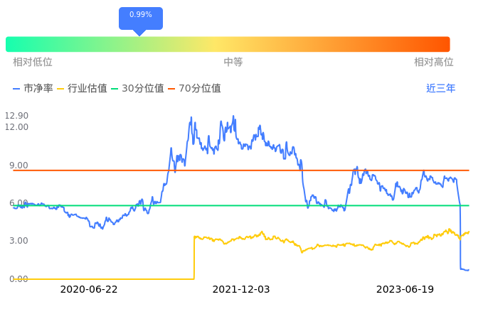 2023年06月19日,退市运盛上涨2.38%收于0.43,今日成交金额661.50万元。下文将从市盈率PETTM、市净率PB、市现率3个角度去分析公司估值情况。
