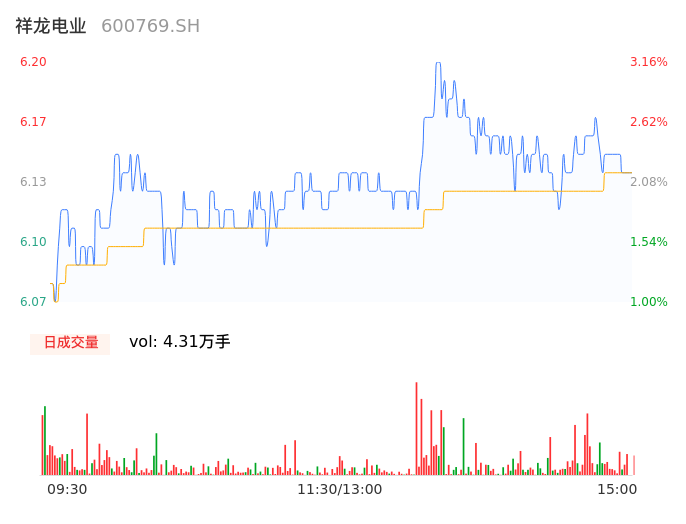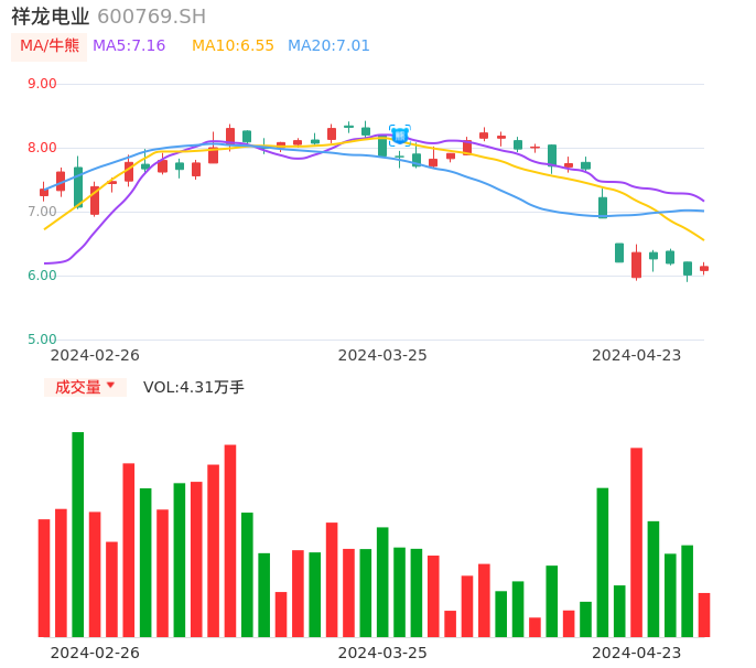 04月23日,祥龙电业收报6.14,股价涨幅2.16%,成交金额2644.27万元,换手率1.15%。