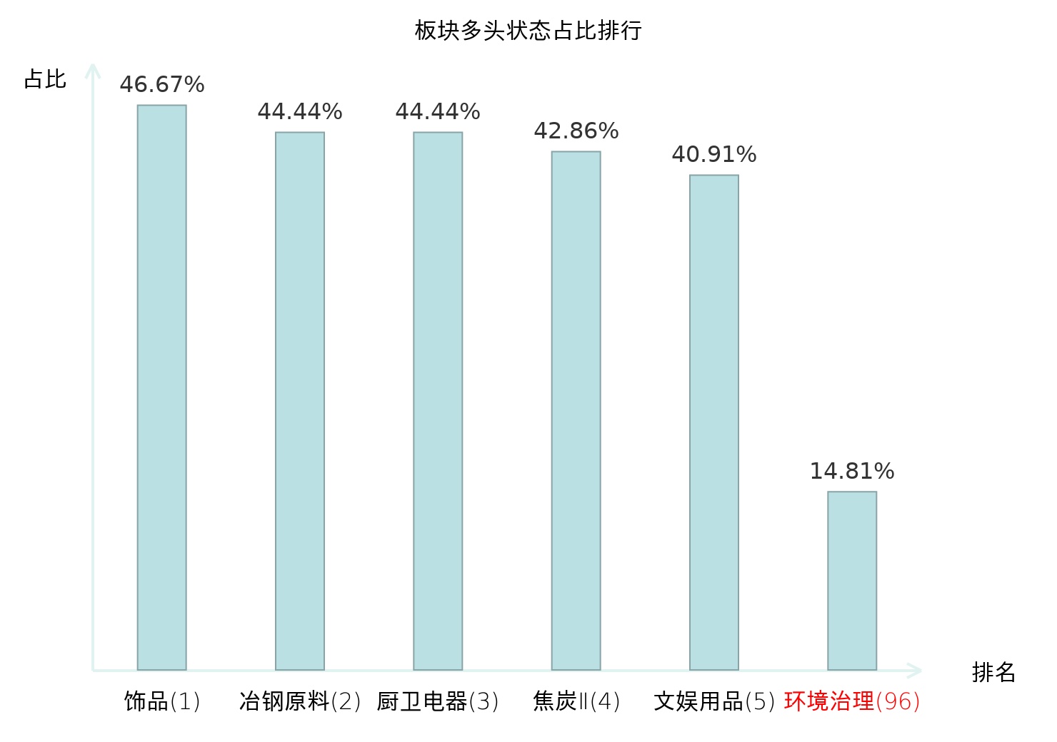 全市场所有行业板块中主力多头状态占比排名中,饰品板块位居第一。专业连锁Ⅱ板块名次提升最快,较昨日上升68位。
