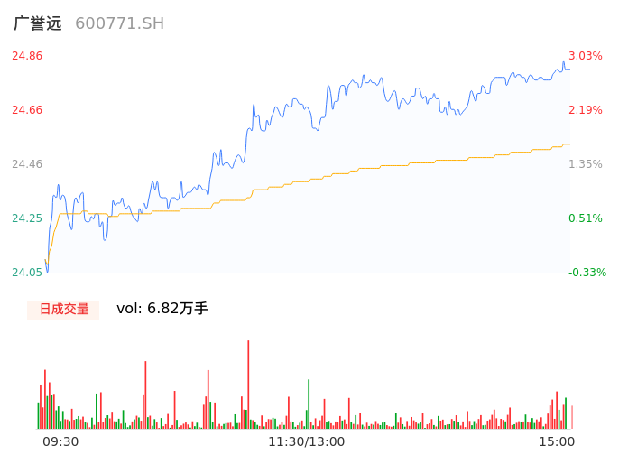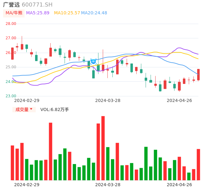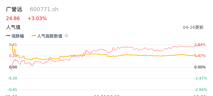 04月26日,广誉远收报24.86,股价涨幅3.03%,成交金额1.67亿元,换手率1.39%。