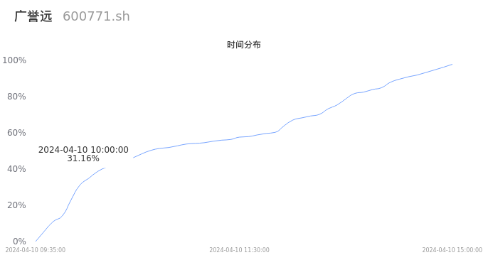 根据成交分布分析,该股票当天放量成交,成交清淡。时间上看,早盘前半小时成交量占据当天总成交量的31.16%;价格上看,成交呈现左偏峰。成交分布分析主要研究股票成交的分布特性,不具有预测功能,请知悉。