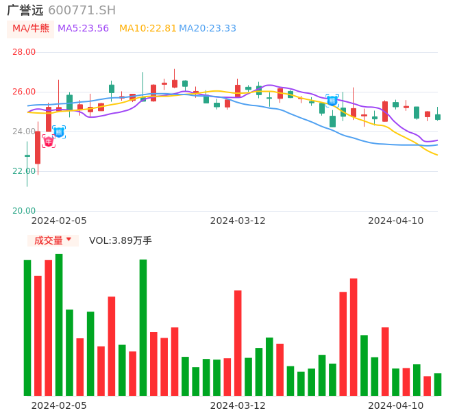 04月10日,广誉远收报24.60,股价涨幅-1.60%,成交金额9677.50万元,换手率0.80%。