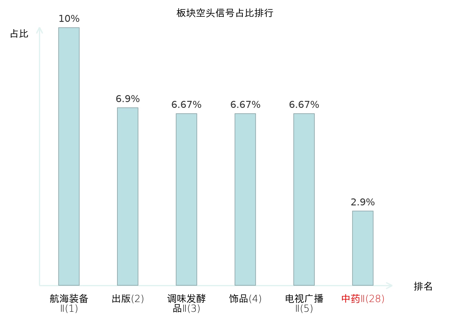 全市场所有行业板块中主力空头信号占比排名中,航海装备Ⅱ板块位居第一。自动化设备板块名次提升最快,较昨日上升102位。