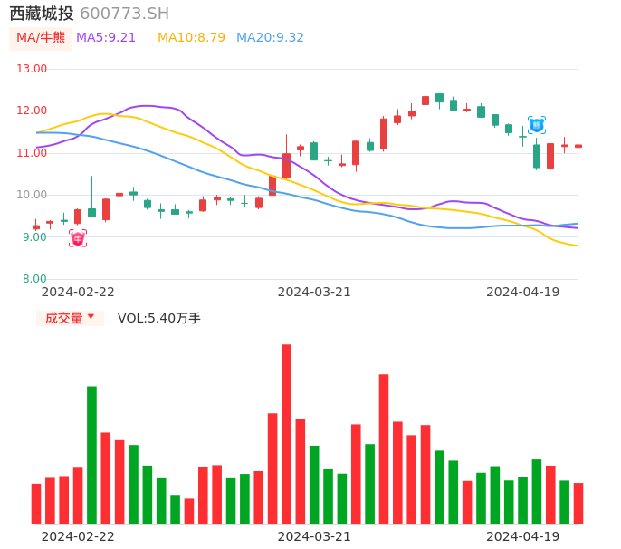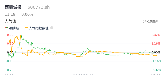 04月19日,西藏城投收报11.19,股价涨幅0.00%,成交金额6067.07万元,换手率0.66%。