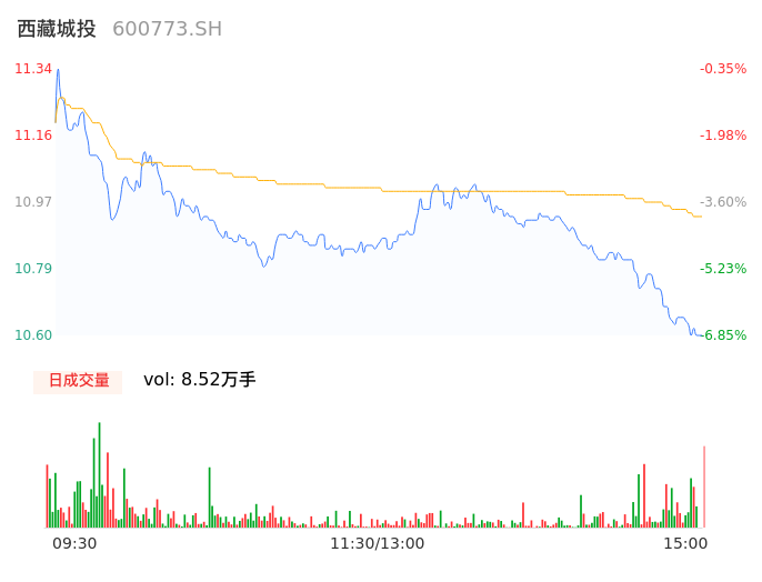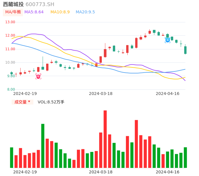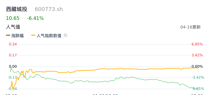 04月16日,西藏城投收报10.65,股价涨幅-6.41%,成交金额9303.58万元,换手率1.04%。