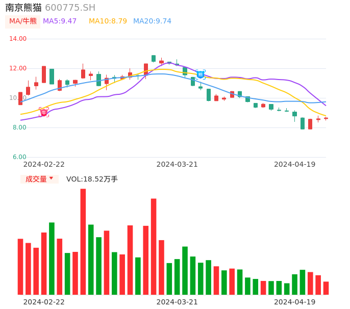 04月19日,南京熊猫收报8.65,股价涨幅0.70%,成交金额1.59亿元,换手率2.76%。