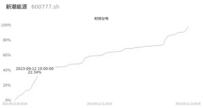 600777新潮能源2023年09月12日成交115.13万手,成交金额3.01亿元,相较昨日放量14.92万手,换手率1.81%,成交清淡。