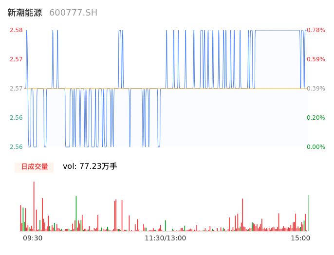 09月22日,新潮能源收报2.57,股价涨幅0.39%,成交金额1.98亿元,换手率1.21%。