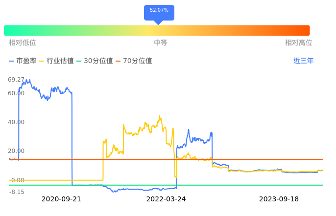 2023年09月19日,新潮能源上涨1.15%收于2.64,今日成交金额4.33亿元。下文将从市盈率PETTM、市净率PB、市现率3个角度去分析公司估值情况。