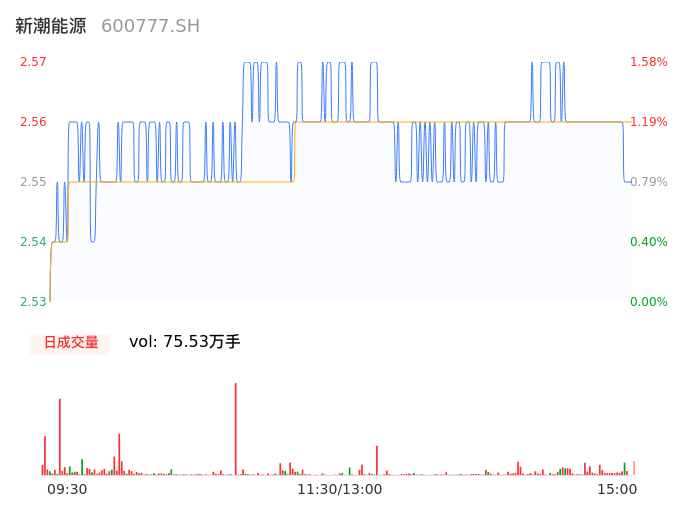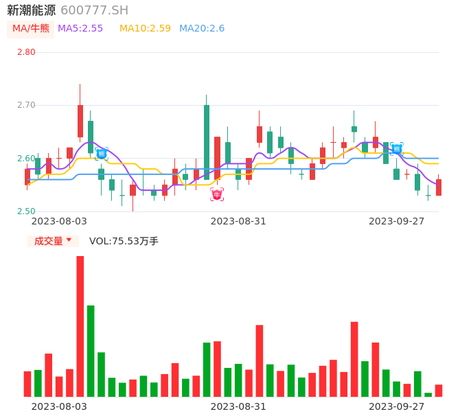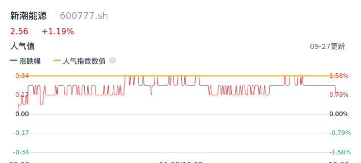 09月27日,新潮能源收报2.56,股价涨幅1.19%,成交金额1.93亿元,换手率1.19%。