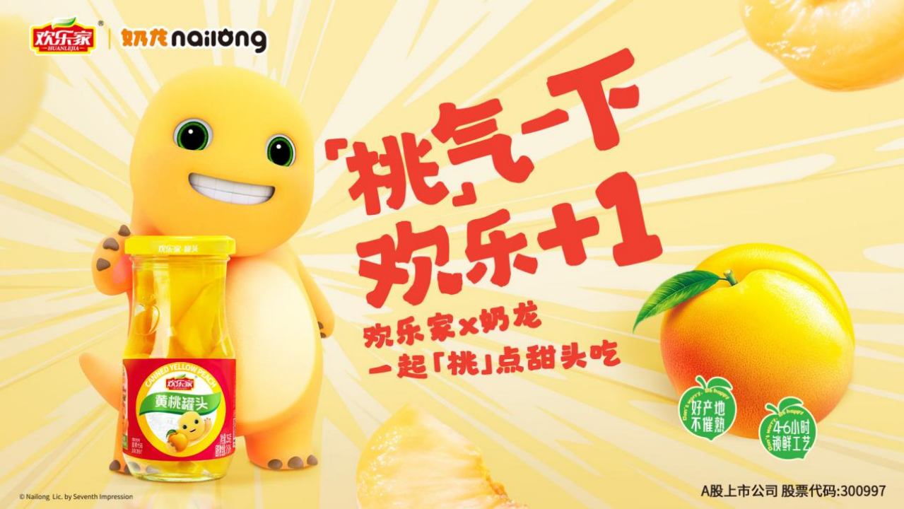 近日,欢乐家(300997.SZ)宣布与国民级IP“奶龙”达成合作,推出联名黄桃罐头新品。新品宣发以“桃气一下,欢乐+1”为主题,将经典果罐产品与潮流IP形象结合,借助情绪价值与场景化消费表达,开辟了水果罐头行业在年轻群体中的新增长空间。