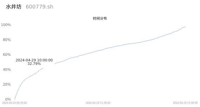600779水井坊2024年04月29日成交8.57万手,成交金额3.86亿元,相较昨日放量5.04万手,换手率1.76%,成交清淡。