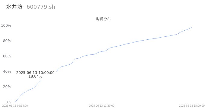 600779水井坊2025年06月13日成交4.23万手,成交金额1.77亿,相较昨日放量1.96万手,换手率0.87%,成交清淡。