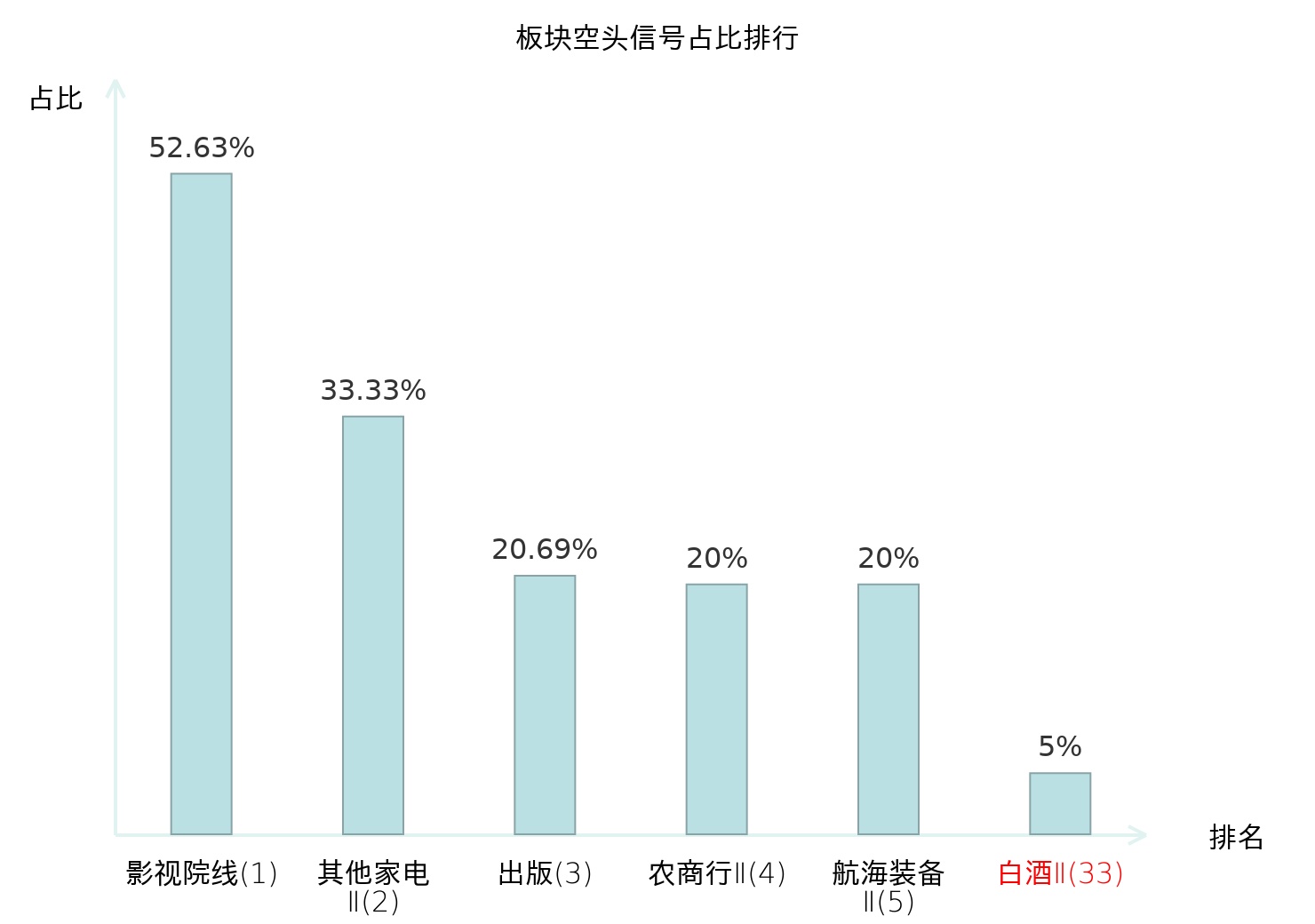 全市场所有行业板块中主力空头信号占比排名中,影视院线板块位居第一。出版板块名次提升最快,较昨日上升115位。