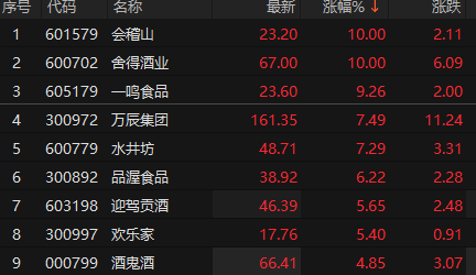 上证报中国证券网讯 8月25日午后,食品饮料板块震荡拉升,截至13时06分,一鸣食品接近涨停,万辰集团、水井坊涨逾7%,品渥食品、欢乐家等跟涨。会稽山、舍得酒业此前封板。