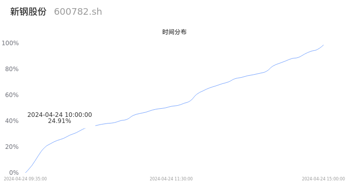 600782新钢股份2024年04月24日成交26.09万手,成交金额1.05亿元,相较昨日缩量9.56万手,换手率0.83%,成交清淡。