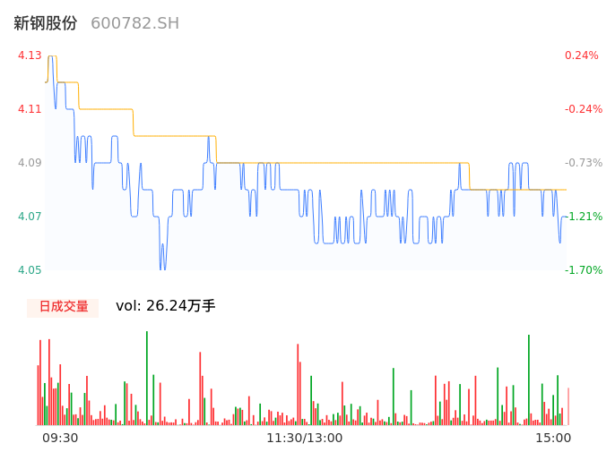 04月26日,新钢股份收报4.07,股价涨幅-1.21%,成交金额1.07亿元,换手率0.83%。
