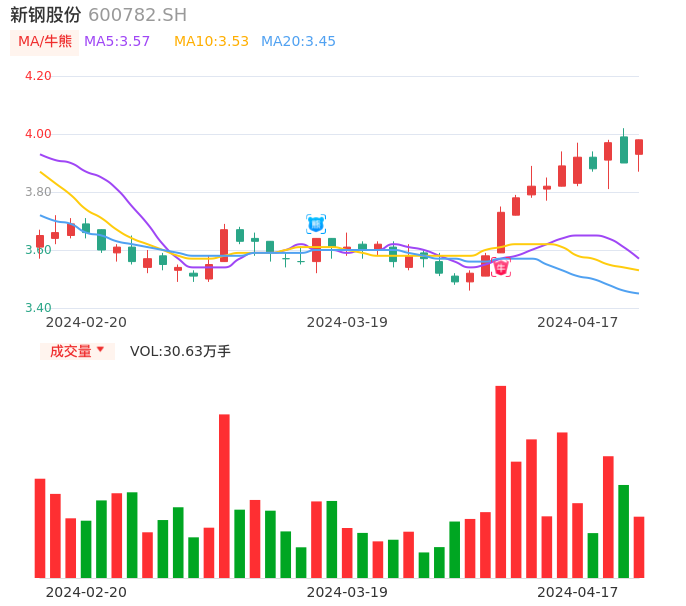 值得注意的是:2024年03月华创证券的马金龙/马野分析师,首次发布关于新钢股份的研究报告,标题为:新钢股份(600782)深度研究报告:宝武注入新动能 新钢股份迎来发展新阶段。